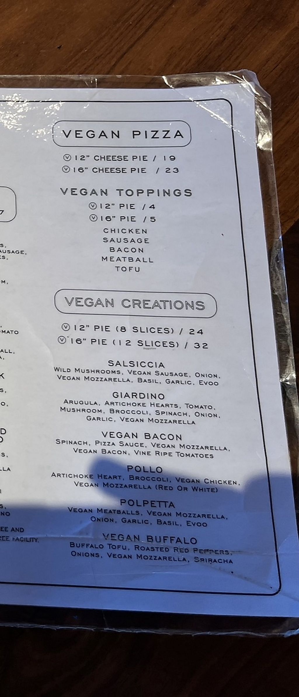 Came with my non-vegan parents and we had the vegan pepperoni pizza. We all loved it! I was so happy to find a new haven pizza place that caters to vegans. I can’t wait to go back and try their other vegan pizzas!