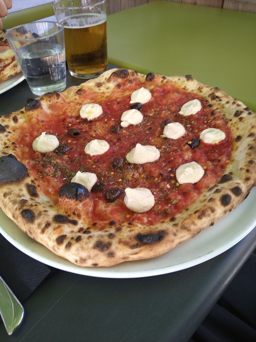 Plain Jane pizza with vegan cheese (cashew ricotta) + added olives as …