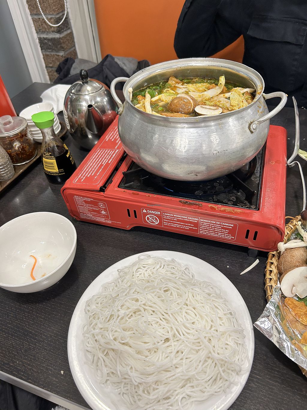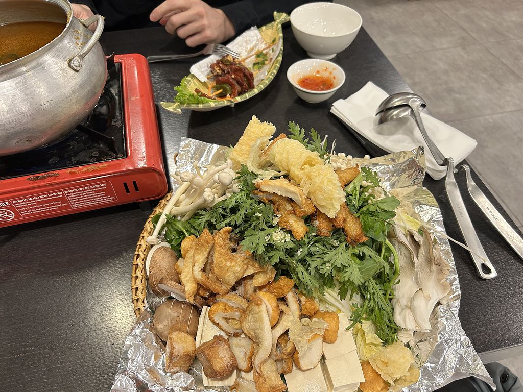 Tom yum hot pot - the broth is sweet and a tiny bit spicy. They give y…