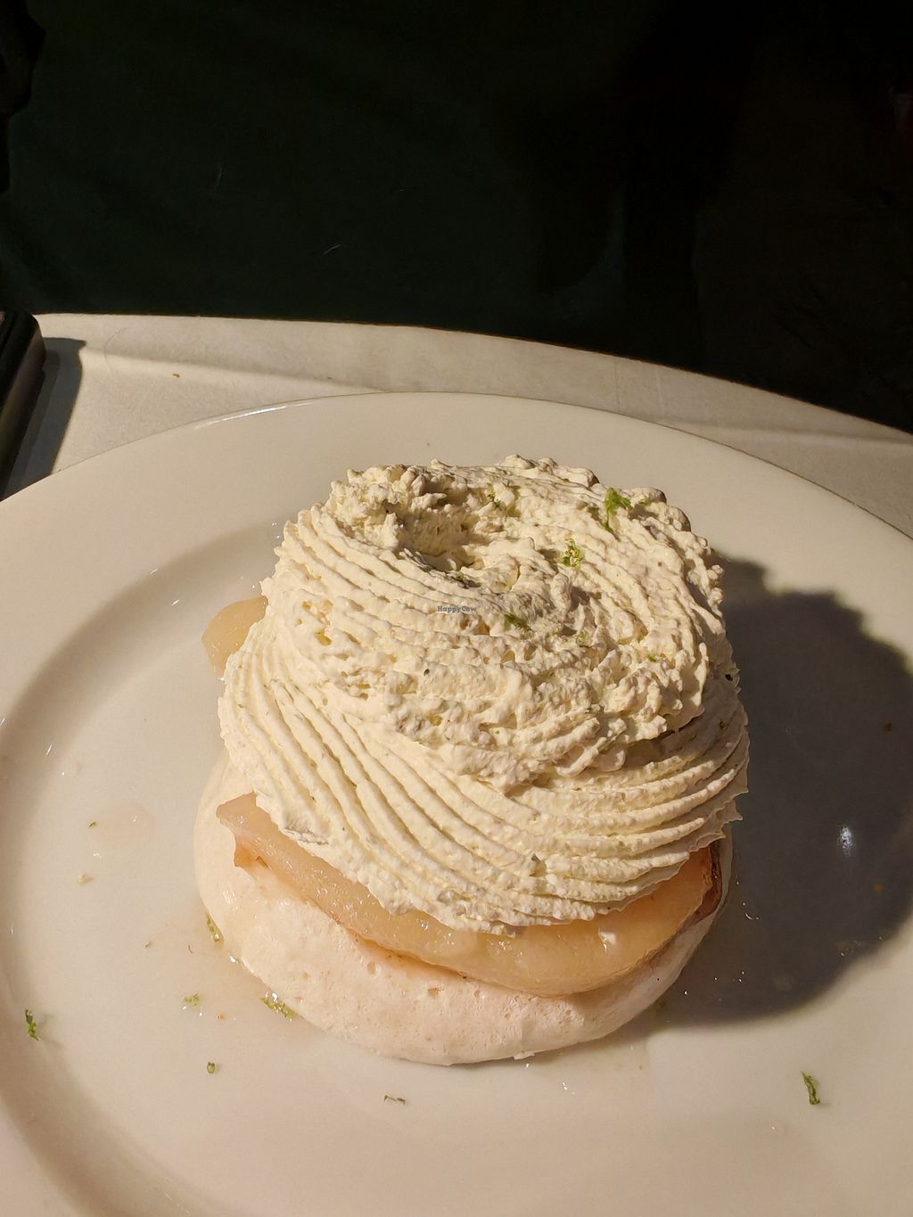 PEAR PAVLOVA MERINGUE, WHIPPED CREAM, PEAR-VANILLA CONFIT, VERBENA-…