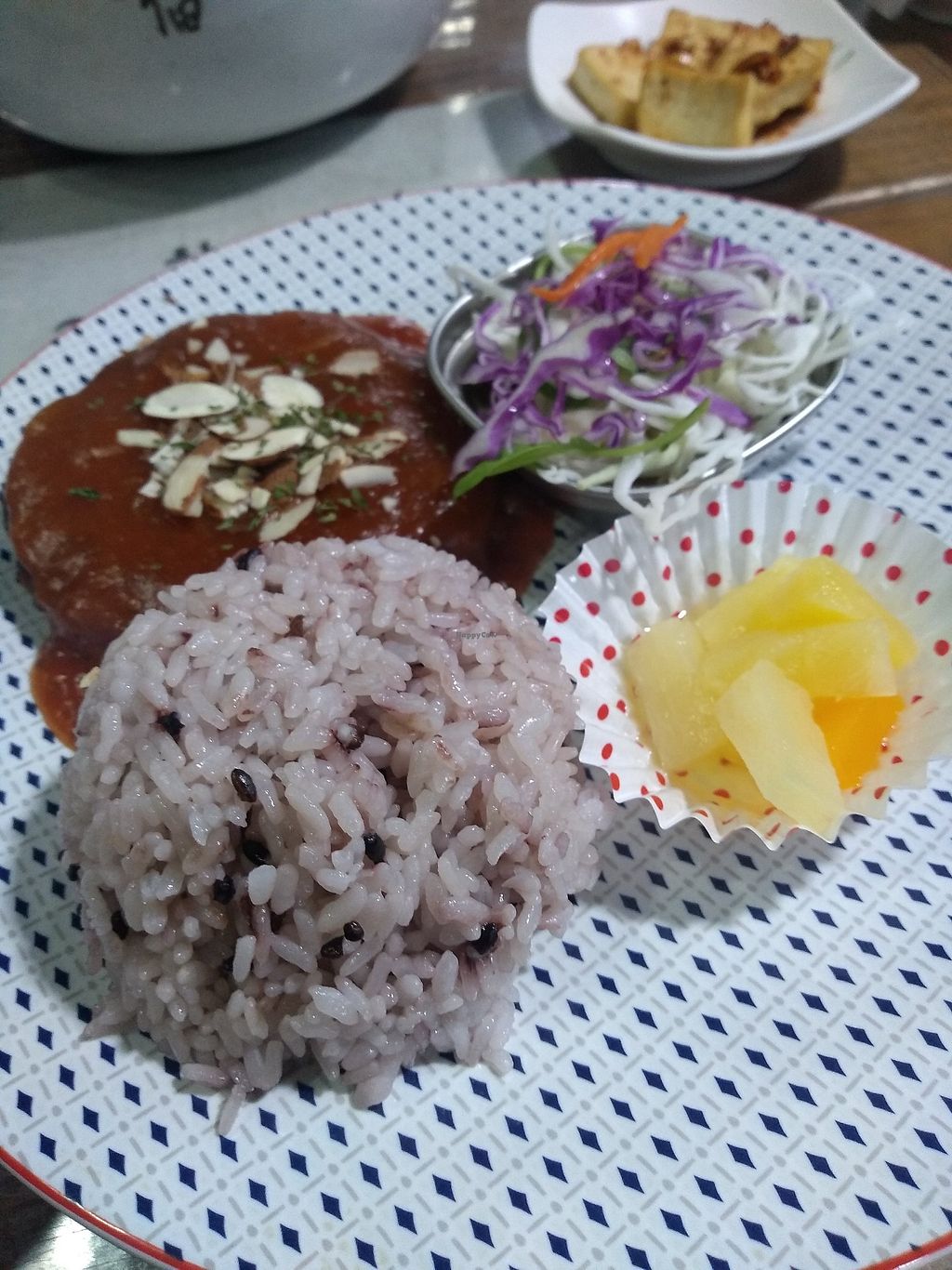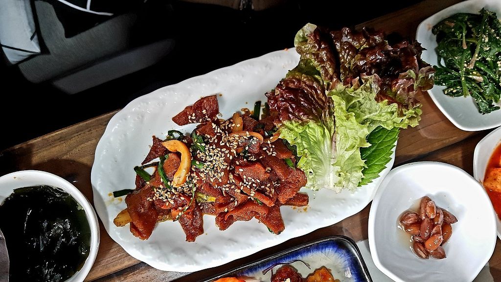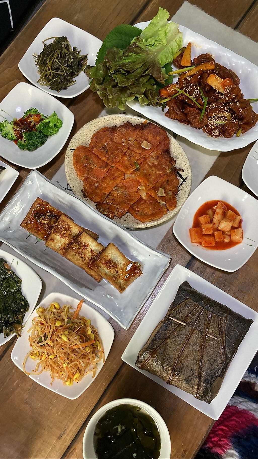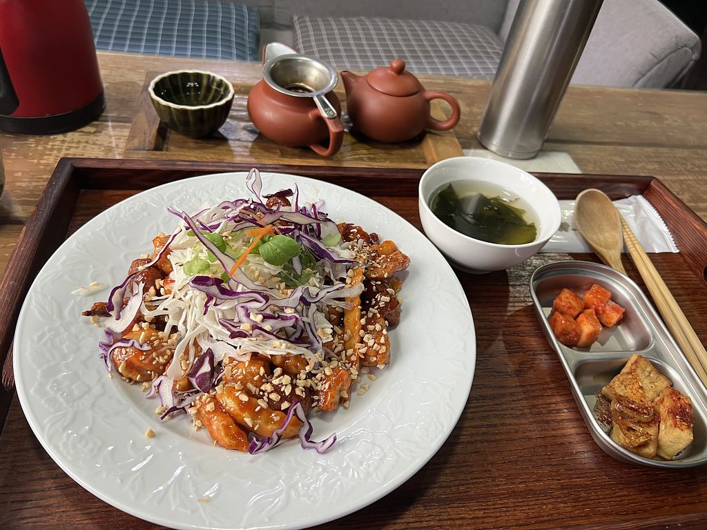 Dumplings and some kind of fried ckn. Loved the sides the best.