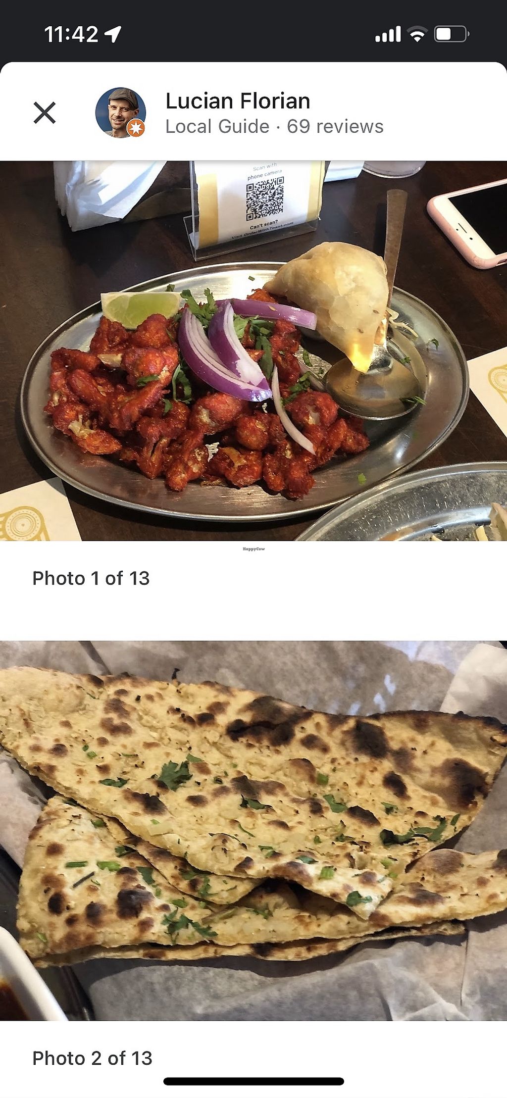 Serves meat, vegan options available. Indian food with vegan dishes on request. Includes fried cauliflower, garlic roti, chickpea masala, okra masala and basmati rice. Open Mon 11:30am-2:30pm, 5:00pm-10:00pm, Wed-Sun 11:30am-2:30pm, 5:00pm-10:00pm. Closed Tue.