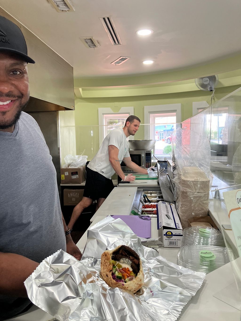 Absolutely the best falafel. Definitely add on the fried eggplant. Yum. Super dog friendly and a really good value for the money, something that is hard to find, especially in downtown Bethesda.