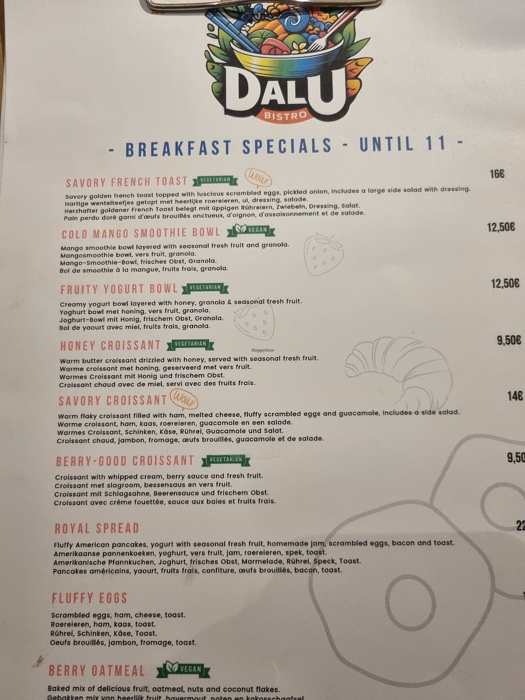Menu July 2024, vegan option for every course