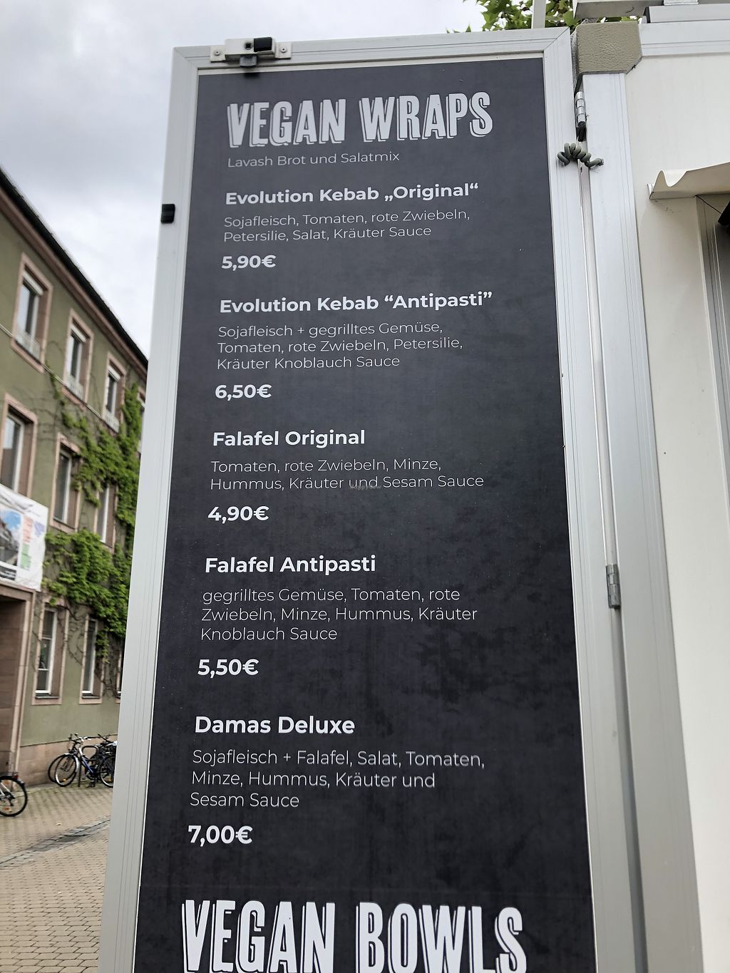 Was surprised to find such a high class Syrian food stall with Döner and Falafel and Bowls on Erlangen market. The owner was super friendly and the Döner with soy meat was delicious!