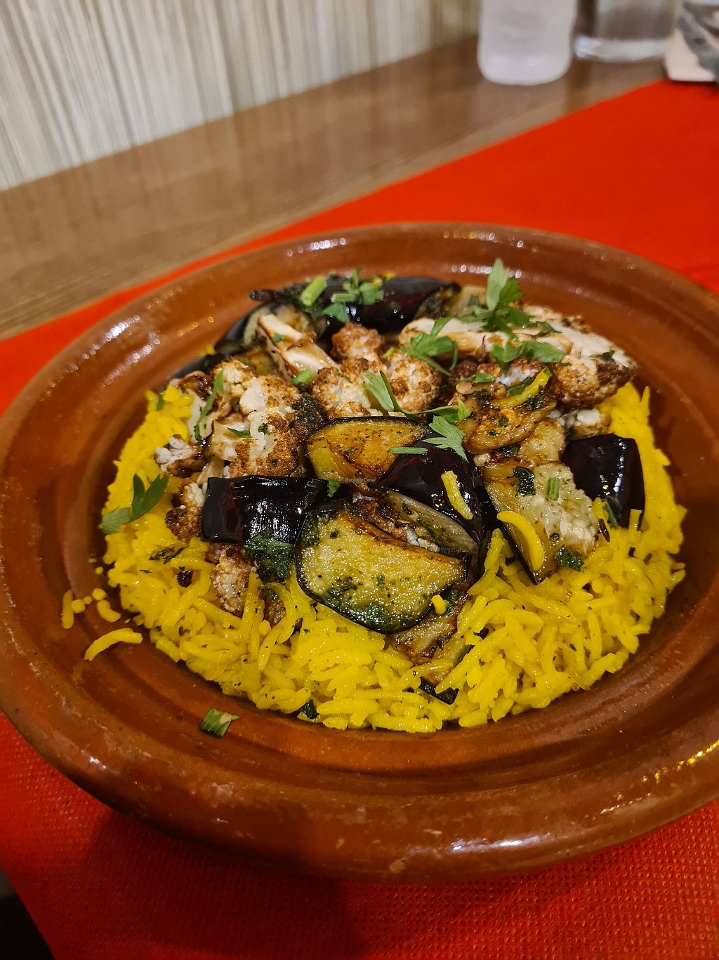 Rice with fried aubergine and cauliflower