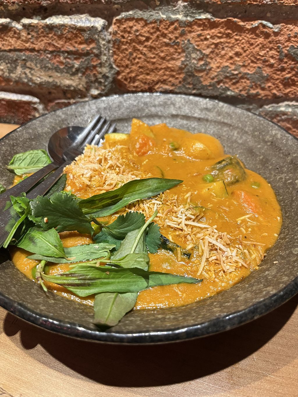 Vegan Rendang, Vietnamese Slaw and Roti with pumpkin smear