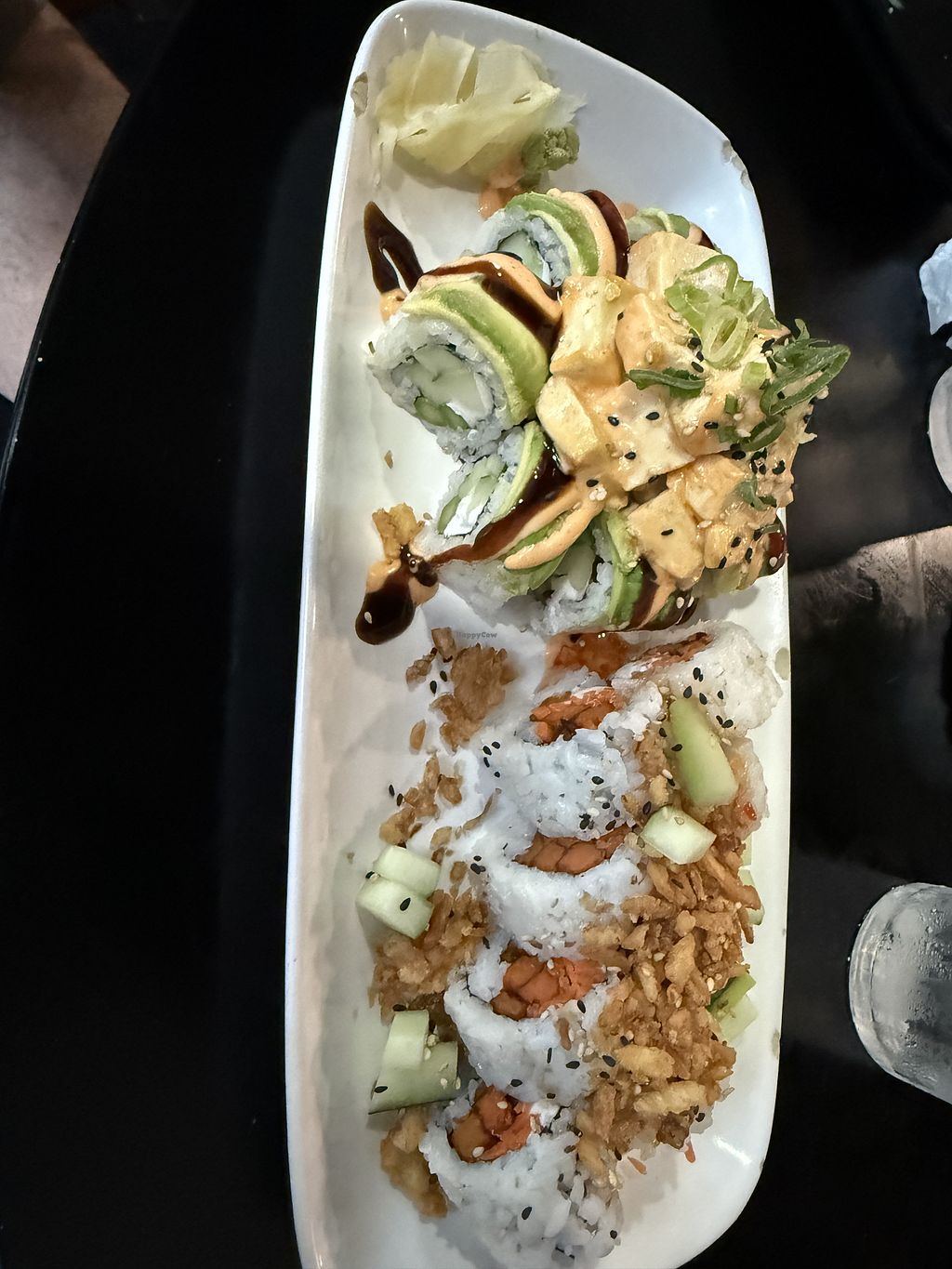 This sushi was just so good! We had the Thai me a River and the Volcano roll! The vegan menu has great options and these include vegan cream cheese, vegan eel sauce and vegan spicy mayo and yum yum sauces. Just perfect! I’m so happy!
