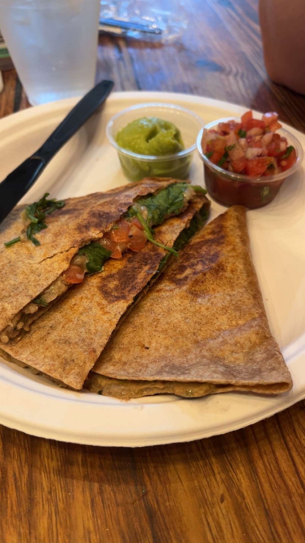 Loved the meatless quesadilla amazing! Meatless empanadas were amazing! Salad was super fresh and dressing was incredible! The banana milkshake was so good my dad brought it up like 3 times.
