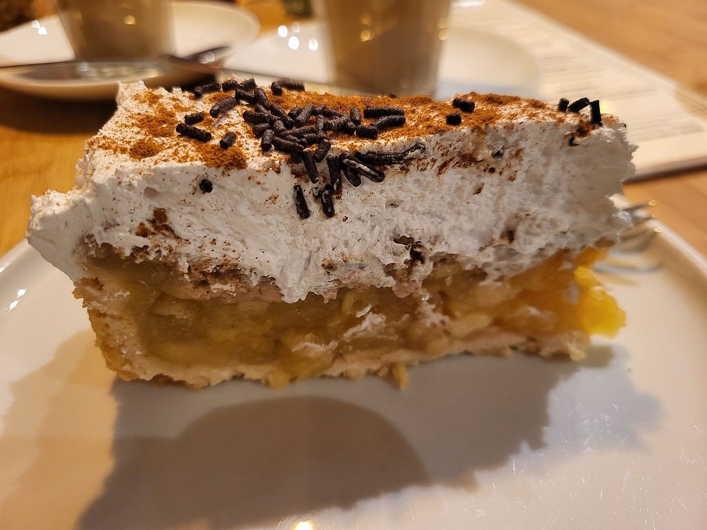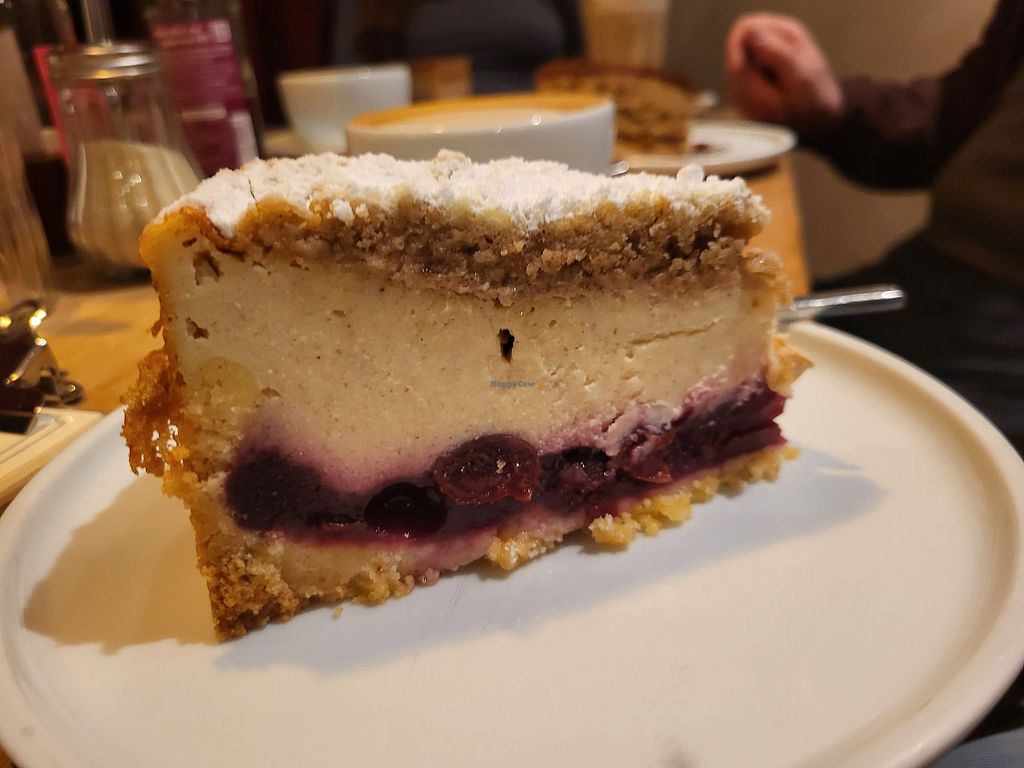 Ich stand heute vor der Kuchen/Tortenvitrine, wo mindestens 10 aufwendig gefüllte Leckereien standen. Beherzt fragte ich, welche davon denn vegan wären. Überraschende Antwort: Alle! Somit hatte ich freie Auswahl und hatte so einen tripple aufgebauten Schoko-Beeren-Sojasahne-Minztraum mit köstlichem veganen Cappu. Sehr hübsche Inneneinrichtung, nettes Personal, auch draußen Sitzen möglich.