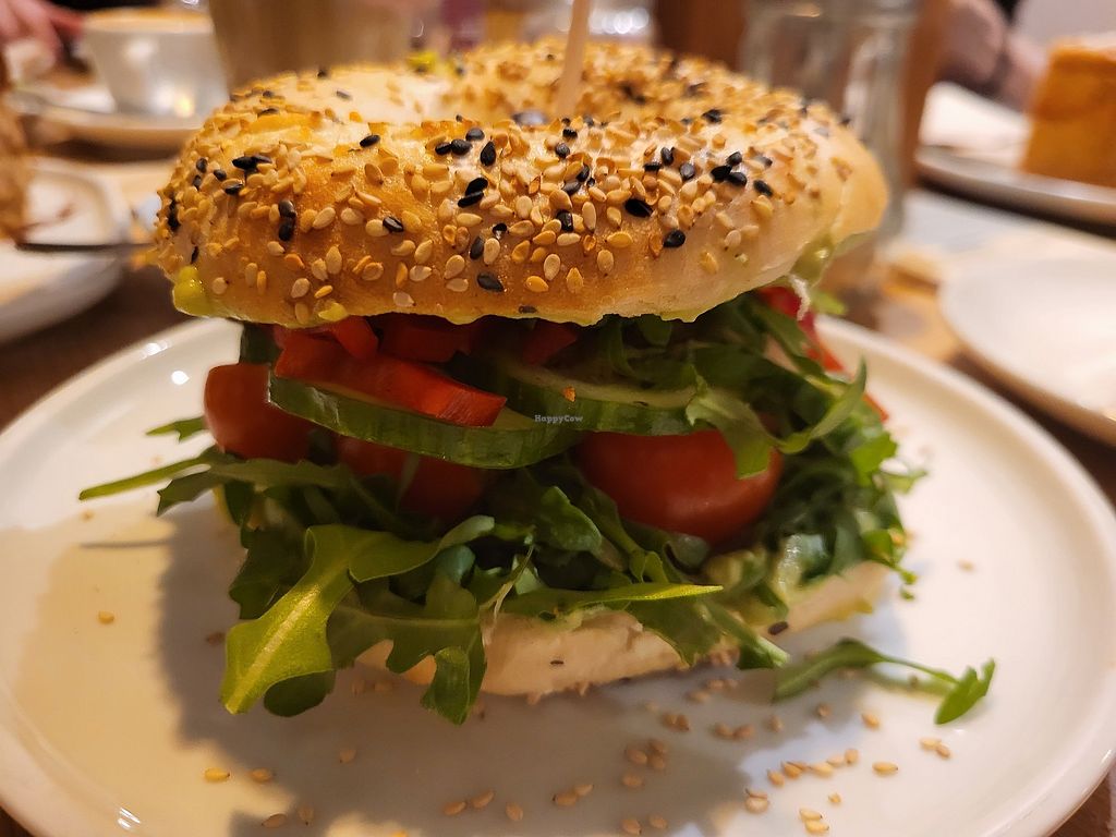 Bagel sehr lecker, gut belegt, sehr vegan! Alle Kuchen VEGAN! HURRA! SO TOLL! Gibt auch lecker Teechen. Ich find den Laden supi!