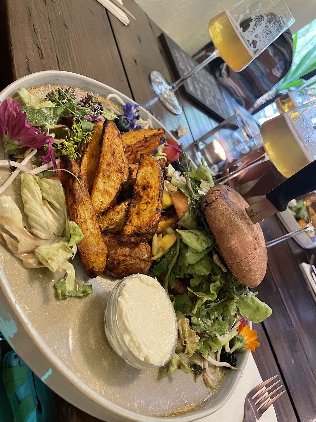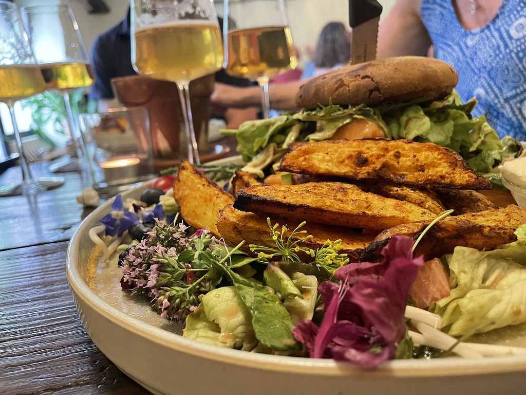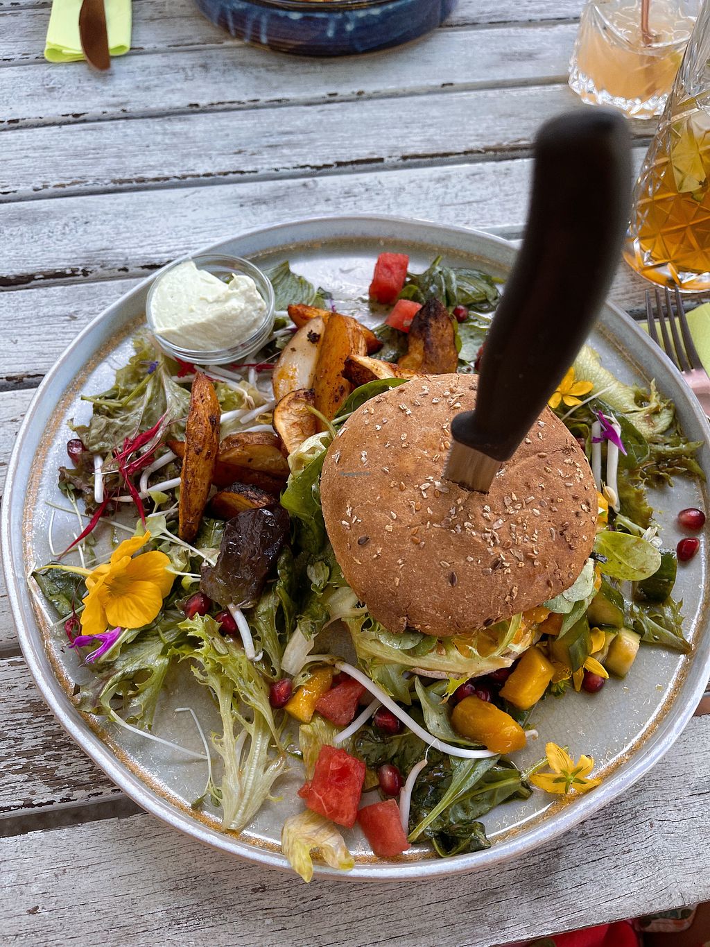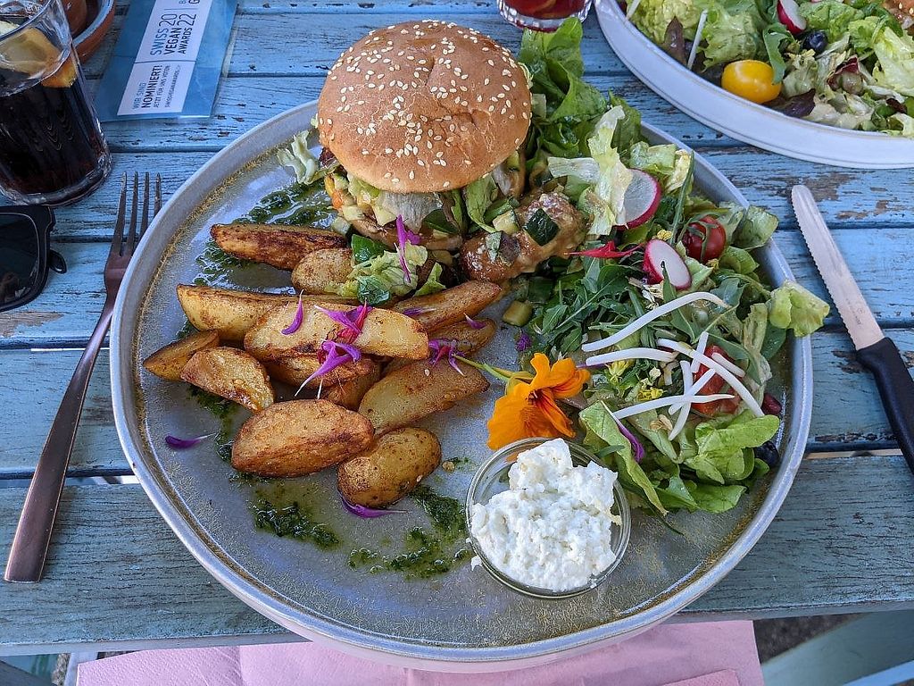 Dönerburger auf Seitanbasis mit Kartoffelecken