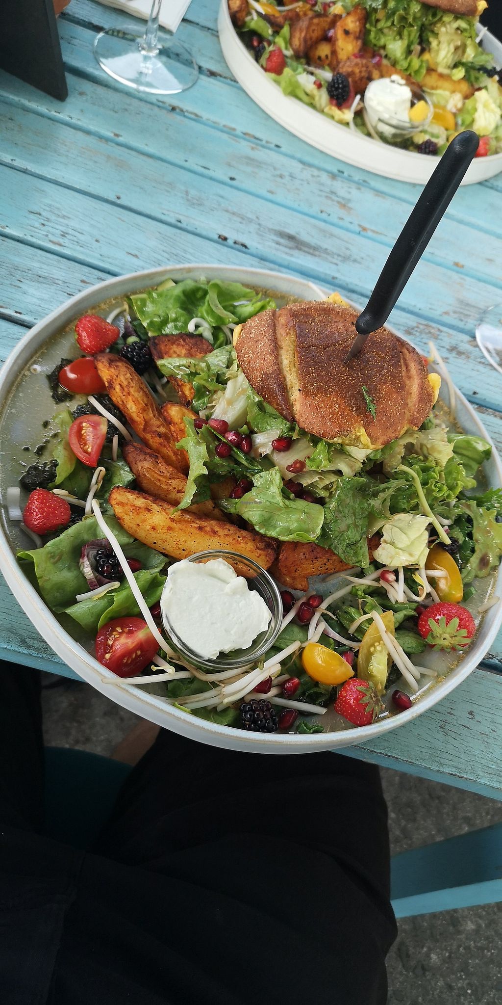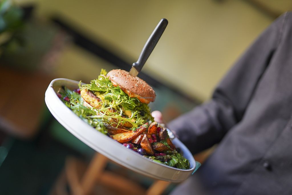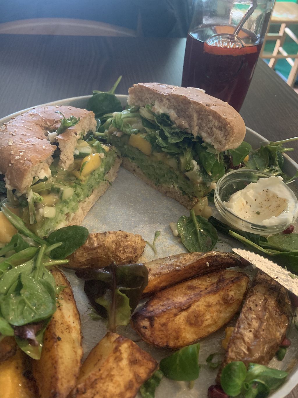 Dönerburger auf Seitanbasis mit Kartoffelecken