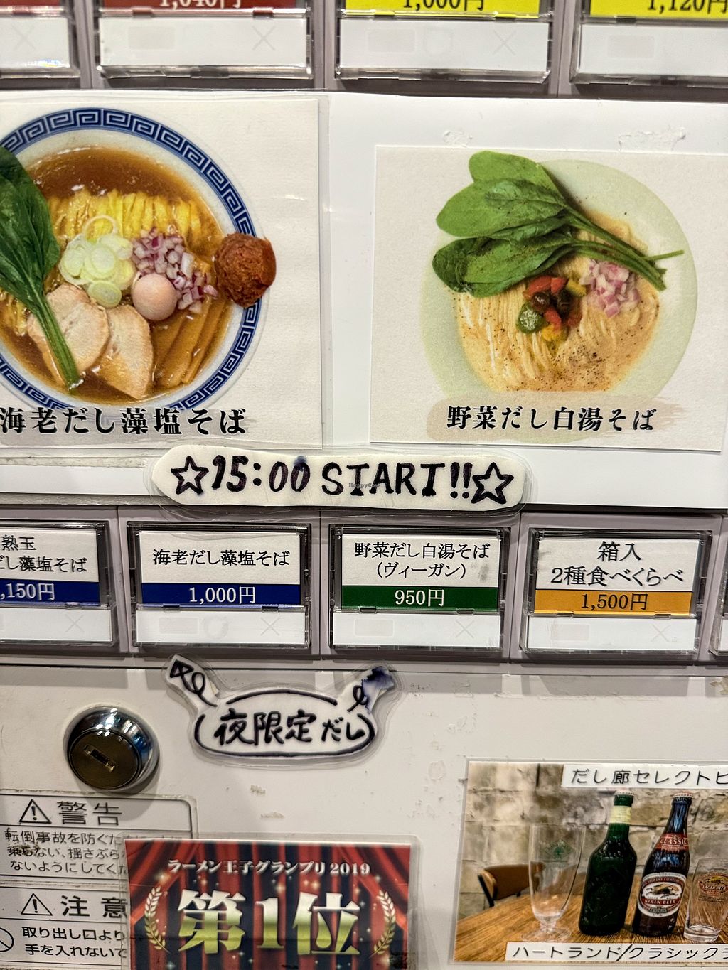 There's only one vegan ramen, so they're likely to run out. The first day we tried the ramen machine sadly had a red X for sold out. I recommend not waiting until too late in the day. The next day we went earlier and we had more luck.
