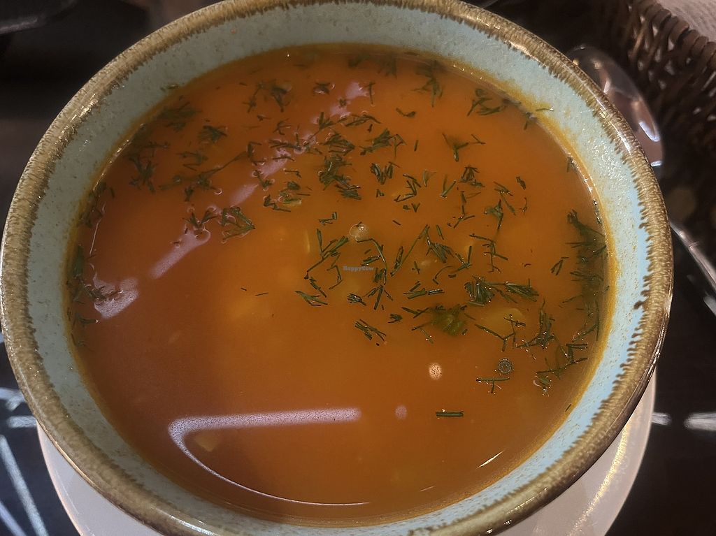 Minestrone soup with chickpeas. Bad lighting as that is not cream!
