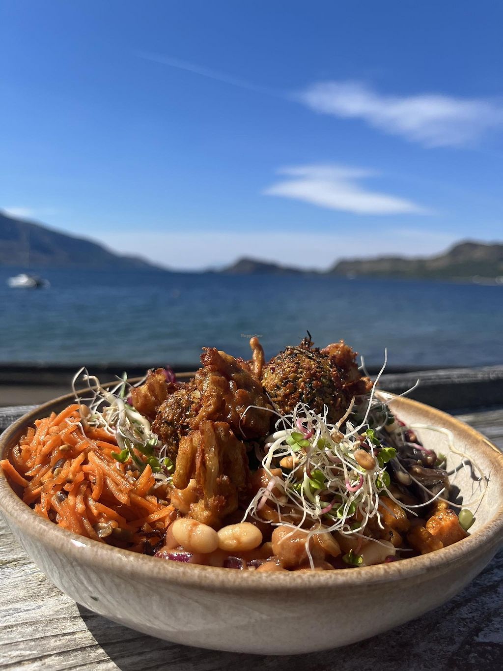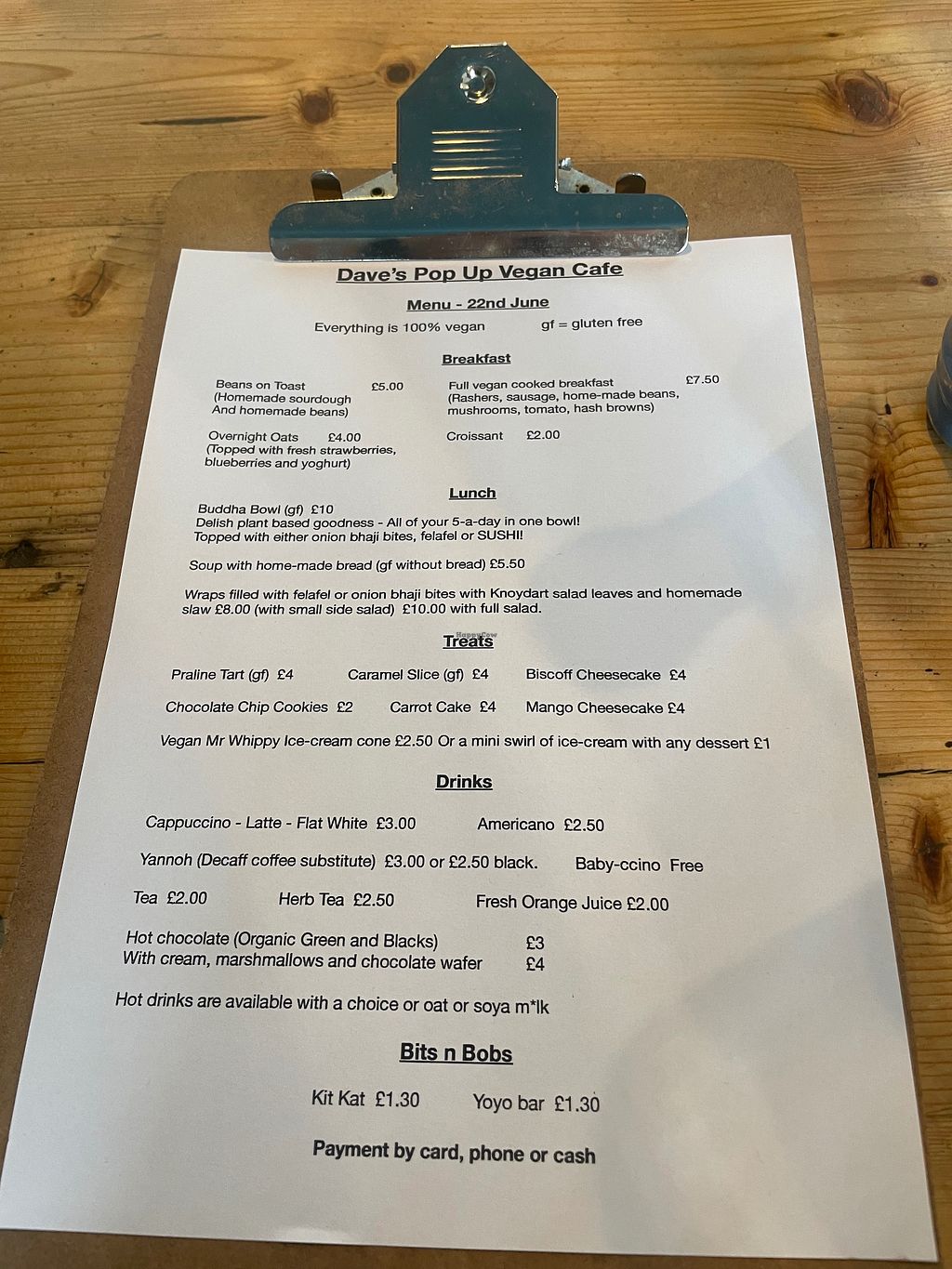 We were in Knoydart for the day on a Saturday and were delighted to find this vegan Saturday pop-up. We were too late in the day for the cooked breakfast but had a freshly made onion bhaji wrap with tasty side salad that was filling and delicious. We also had a caramel slice and carrot cake that were both gorgeous. Hot drinks including hot chocolate were also available with oat or soy milk. Dave himself came to chat to us and it was clear he’s passionate about sharing veganism with everyone. The tearoom itself is clean and cosy with very friendly staff. This place is an absolute must if you’re in the area!