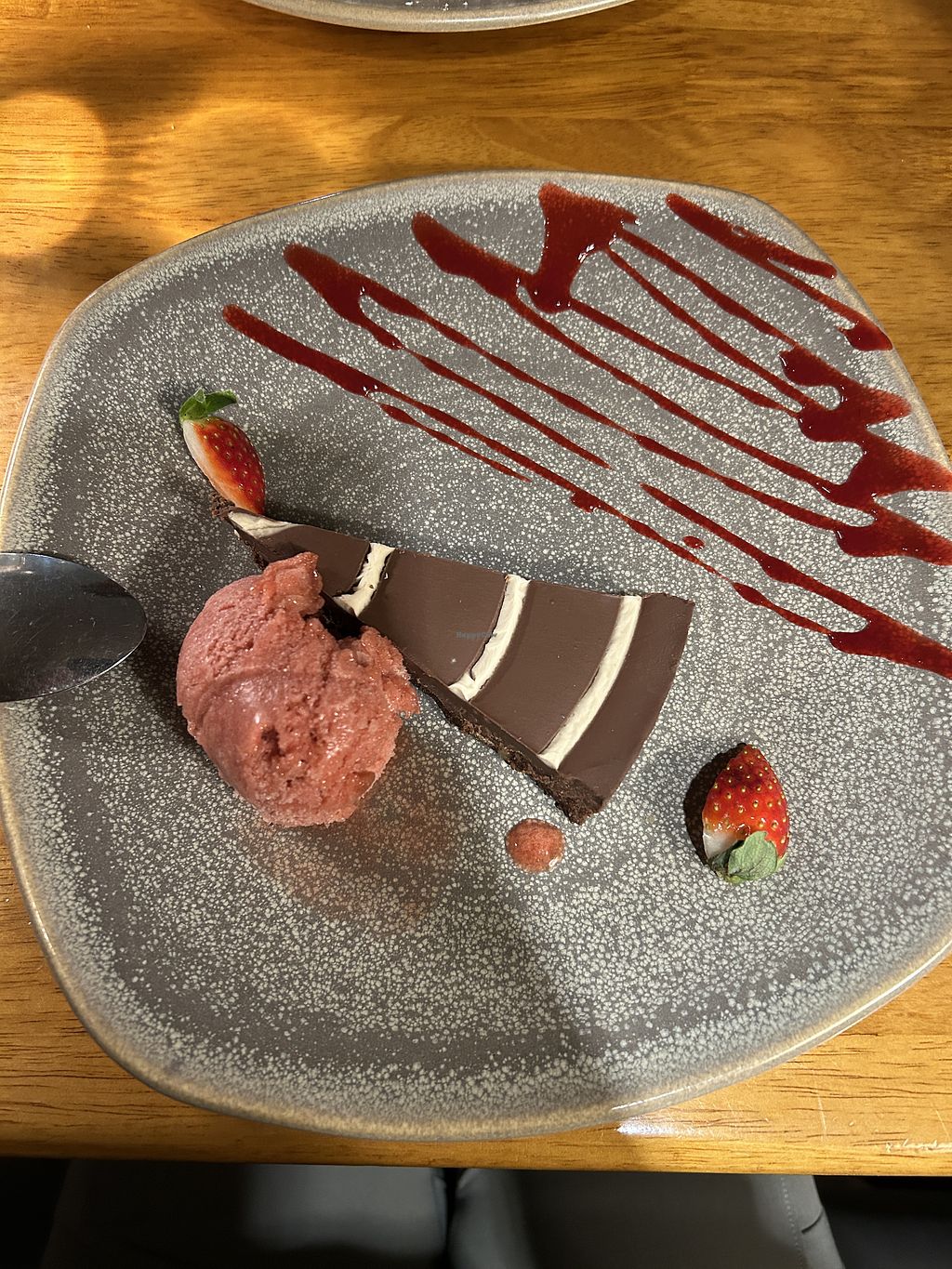 We only came here for some drinks and wanted to taste the vegan dessert on the menu, which was chocolate and coconut tart with raspberry sorbet ice cream. This was defenitely the best vegan dessert ever tasted!