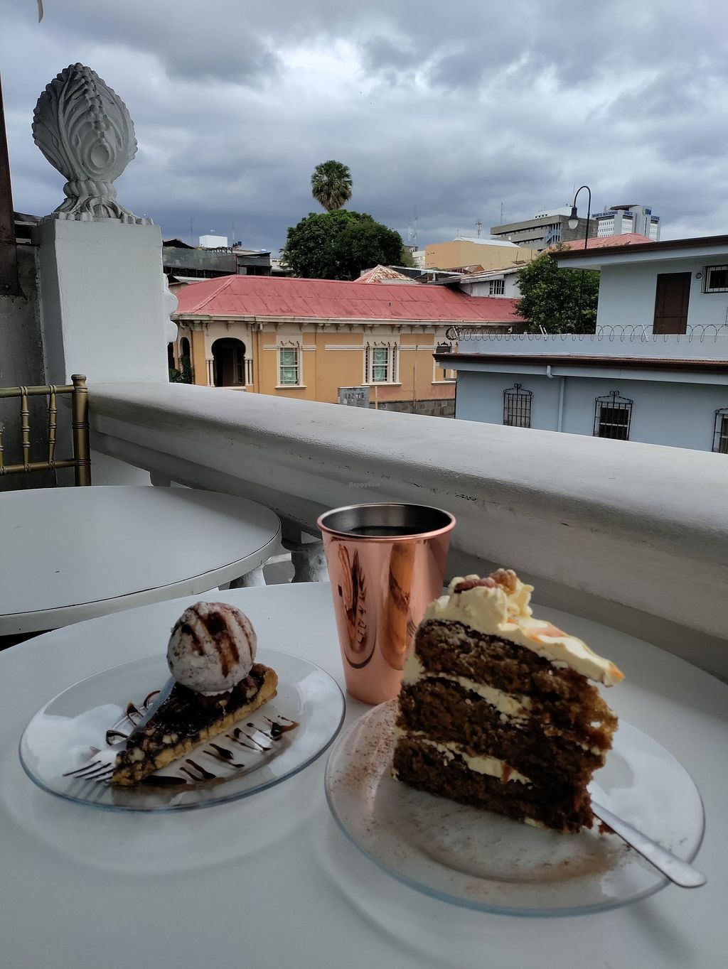 Pecan pie with vanilla choc chip ice cream and a carrot cake