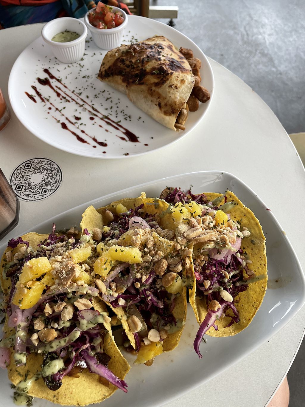 Quesedillas, empanada, iced oat milk latte