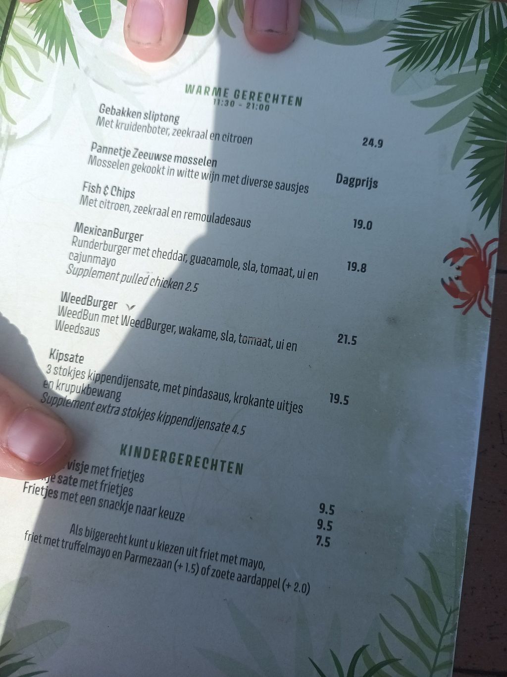 Je ziet de zee, en het is lekker. Alleen is het niet super duidelijk wat vegan is, maar als je het vraagt weten ze het wel.