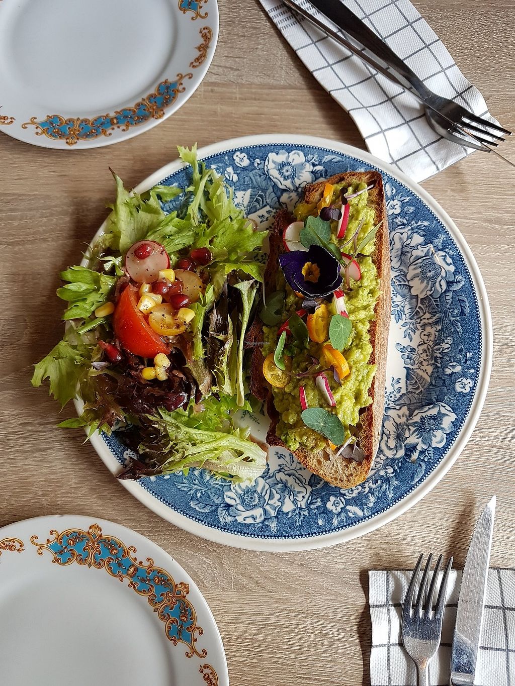 Bruscettas with avocado, garlic and orange.