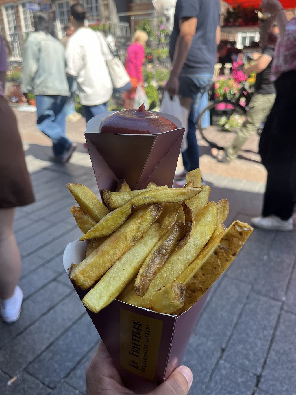 Klein frietje gehaald met vegan mayonaise. De verkoper kaartte aan dat er nog vele andere vegan opties zijn in sauzen en burgers. Weinig frietzaken gezien in Nederland met zoveel keuze!