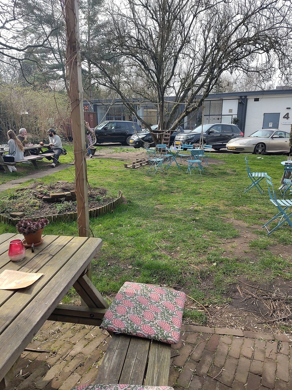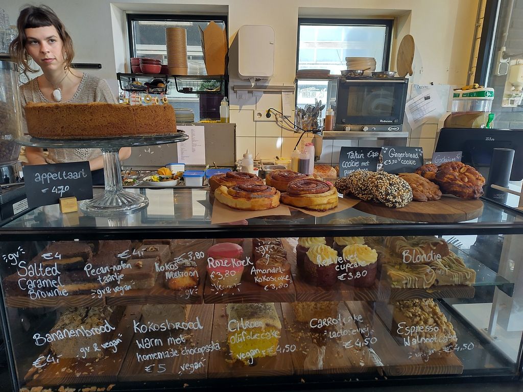 I had here the sandwich currychicken. They also have a garden. A bit disappointing are the cars parked in front of the store. This is a no-meat lunchroom. They didn't have the roze koeken here but they do have vegan pastry.