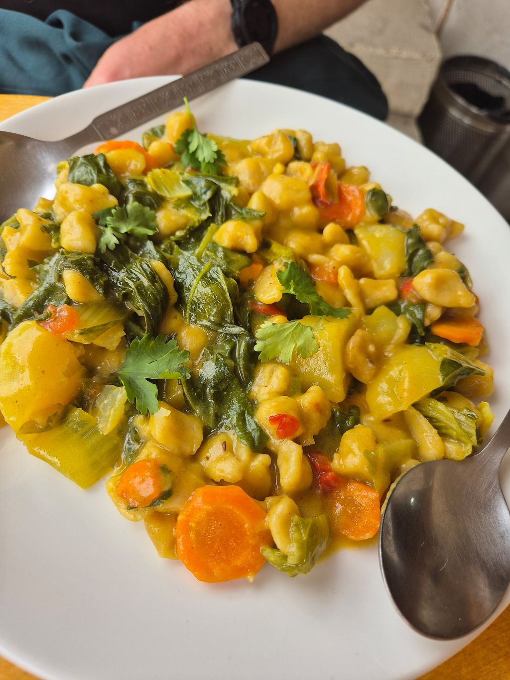Amazing local food. Many vegan options and many veggie ones can be adapted to vegan. Friendly staff and great atmosphere. Balcony seats with a view of a busy street and peaceful indoors seating with a little shop selling local produce. 100% recommend!