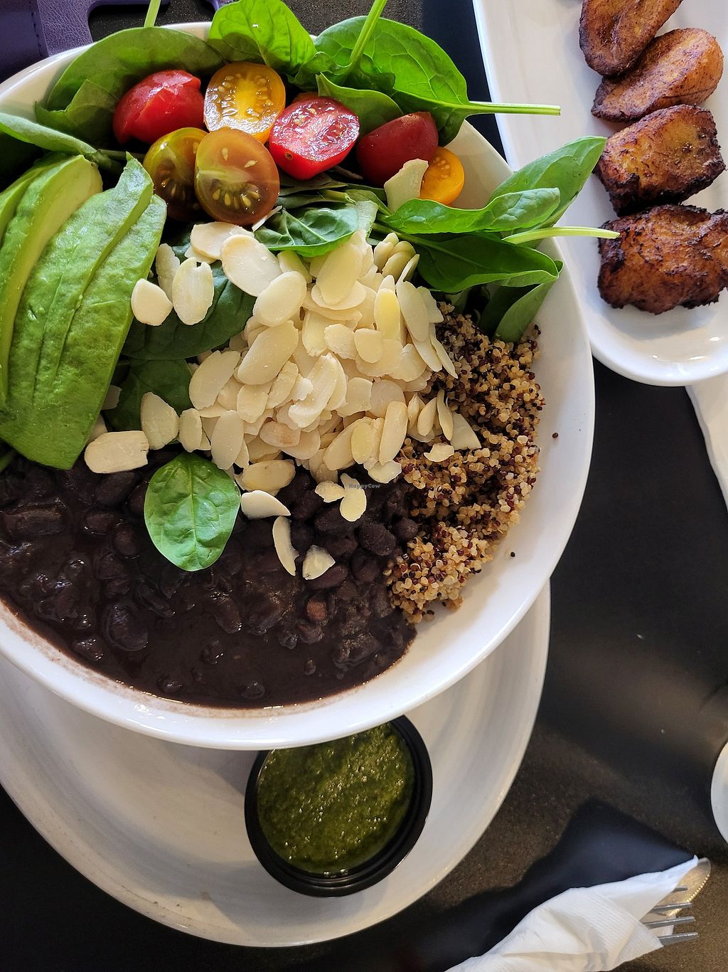 Vegan bowl - delicious - with black bean arepas - also delicious!!!