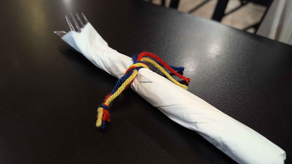 Even the silverware is decorated with the colors of the Colombian flag