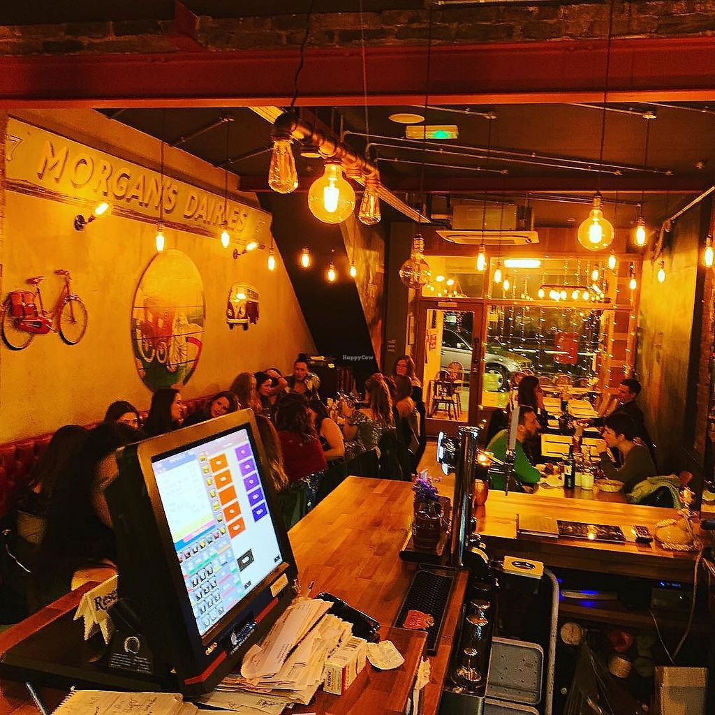 Serves meat, vegan options available. Mediterranean bistro and bar serving Turkish and Kurdish cuisine for breakfast, brunch, lunch and dinner. Has a separate vegan menu including a seitan wrap, falafel burger, broccoli and chickpea salad, vegan meze platter, vegan saksuka and chocolate cake. Gluten-free options. Has vegan wine. Reported closed April 2023.