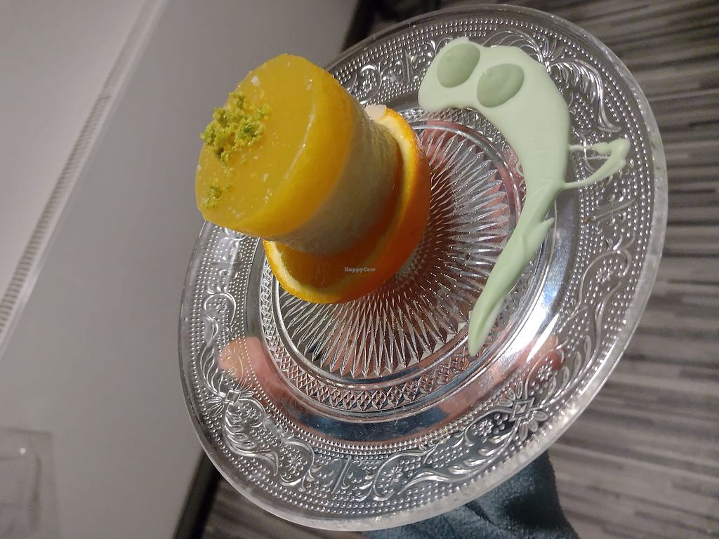 Multi-layered fruit jelly with chocolate sauce