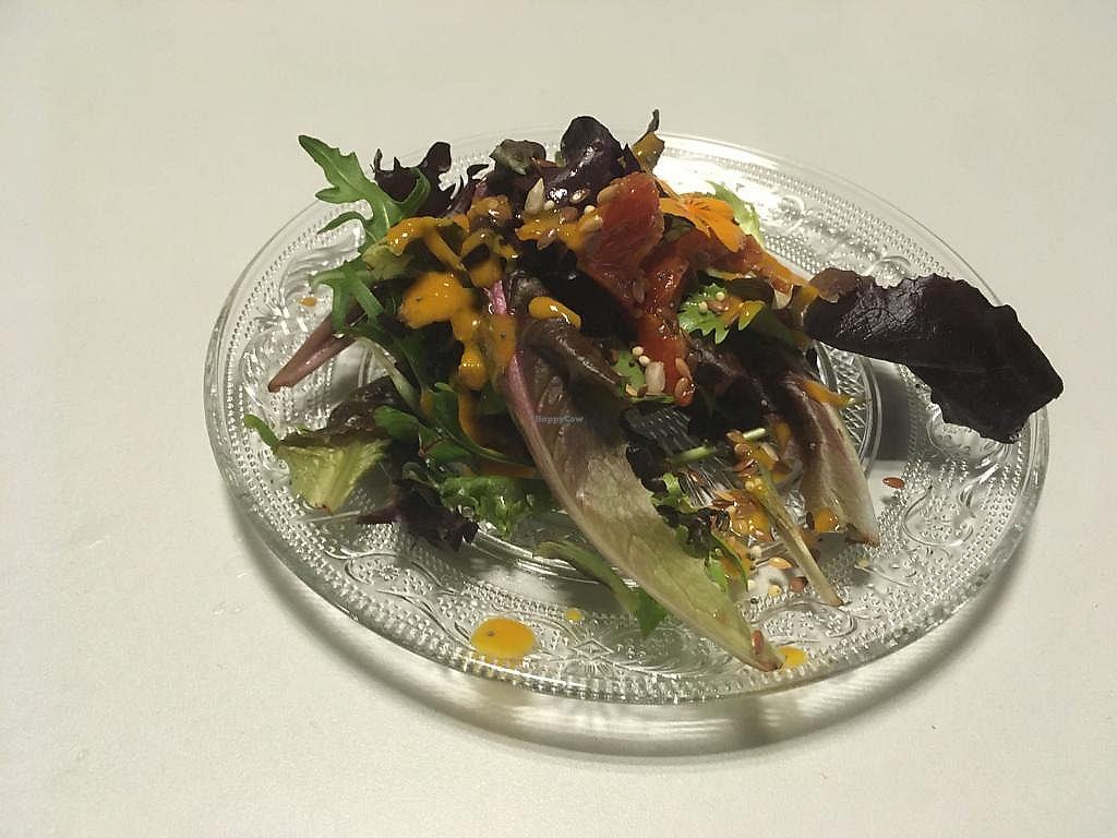 Green leaf salad with concentrated citrus sauce