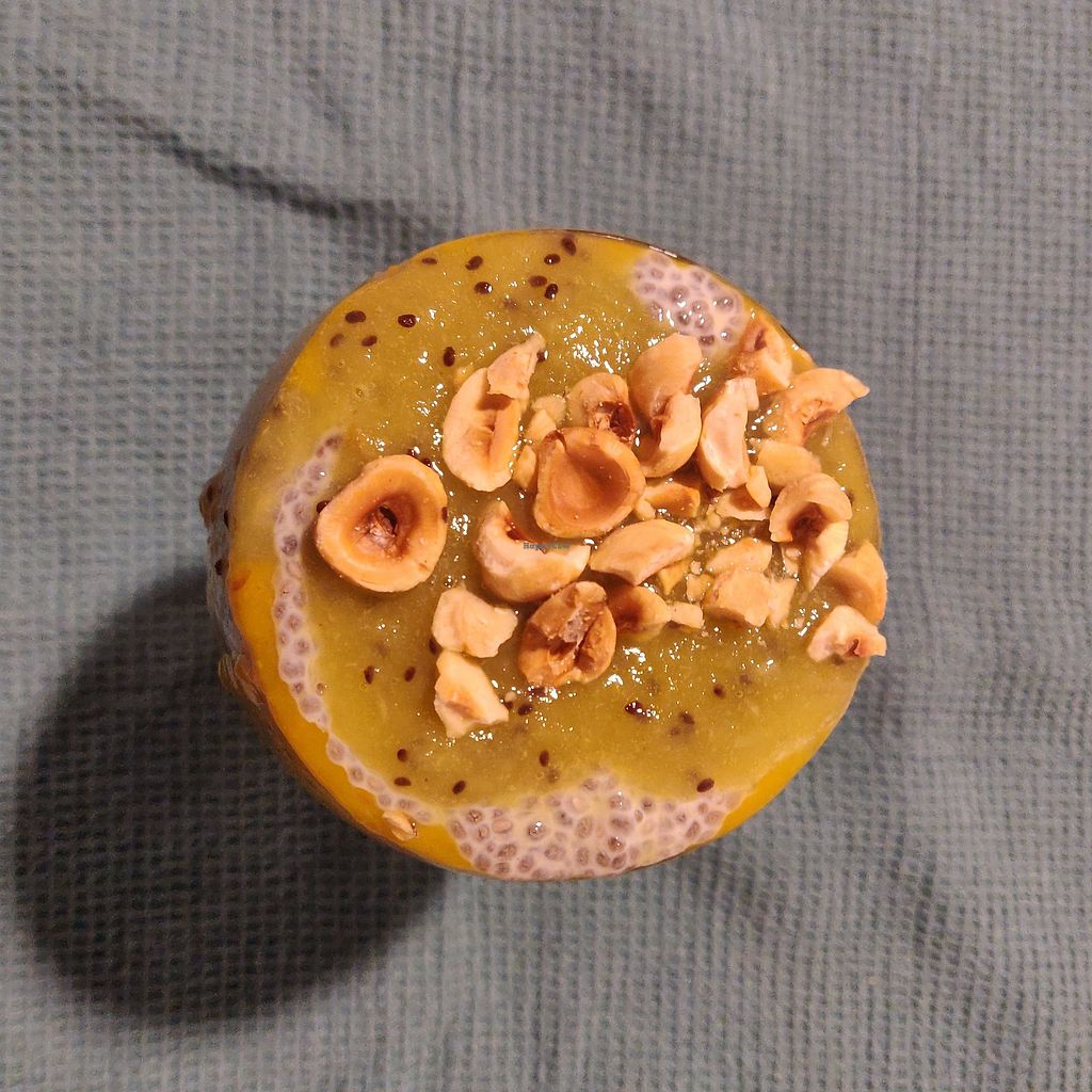 Chia pudding gemaakt met een vruchten saus van mango, sinaasappel en d…