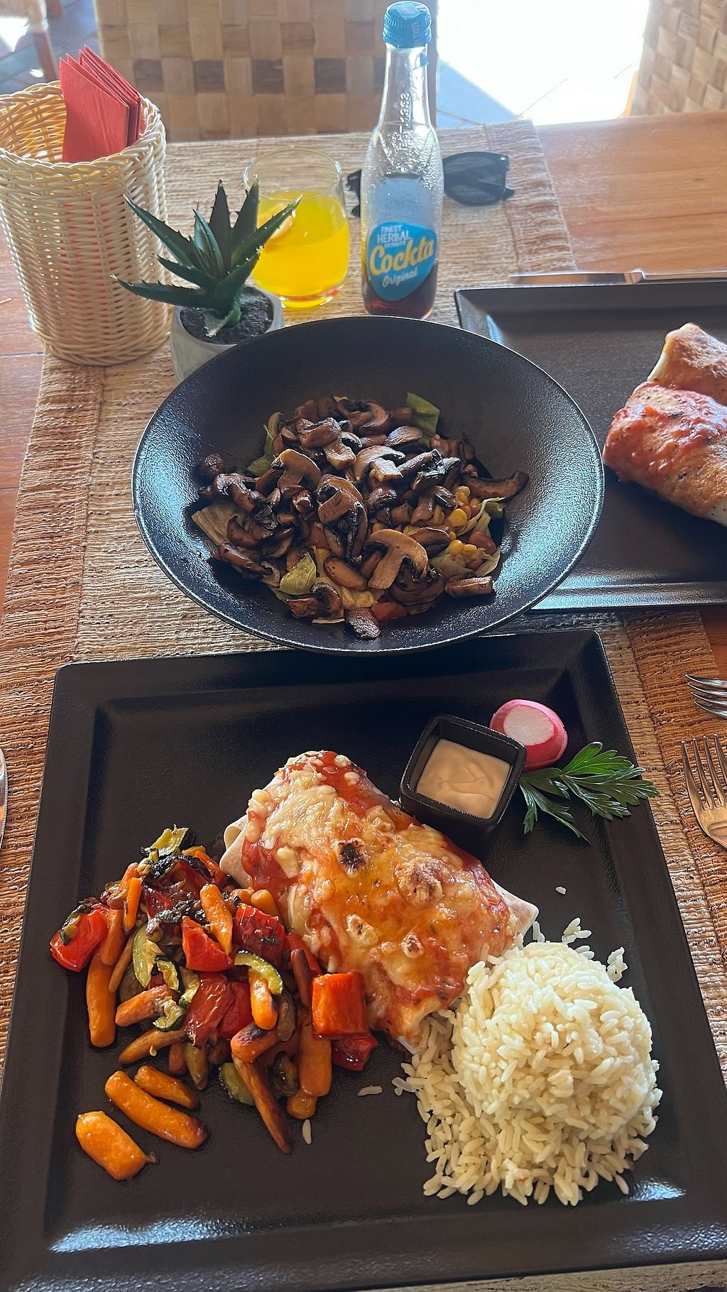 Vegan pancakes with chocolate and chocolate chimicangas with vanilla c…