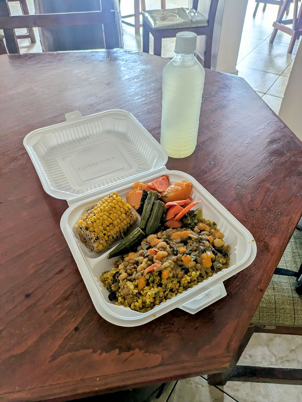 I had a big container full of food and it cost me only $20(BBD). It was so filling that I actually only ate half at lunchtime and took the rest home for dinner, so two meals for $20 is a bargain! They are generous with portions so you'll be fuelled for your afternoon and they have a range of drinks in the fridge too.