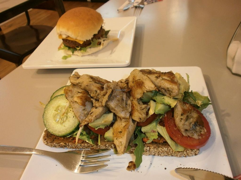 Warm faux chicken, fresh crusty bread roll & delicious relish