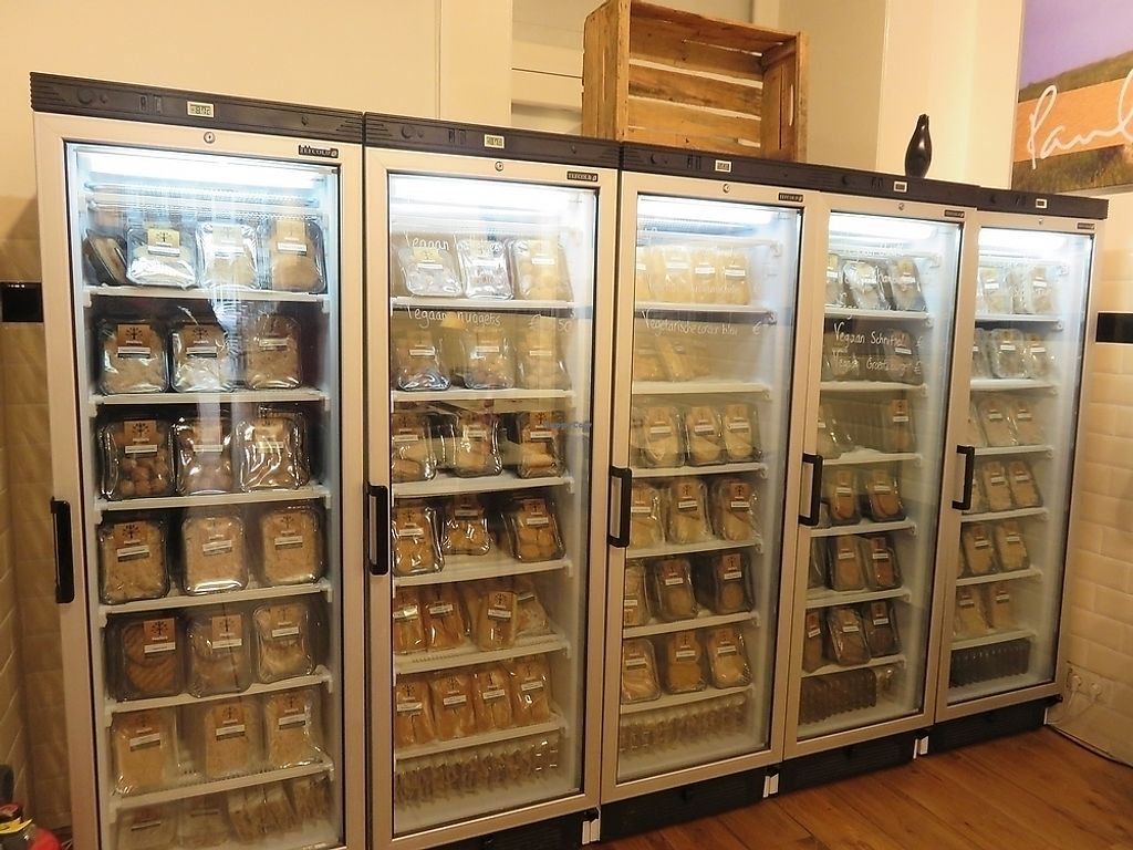 All vegan products inside the glass front 'butchers' counter