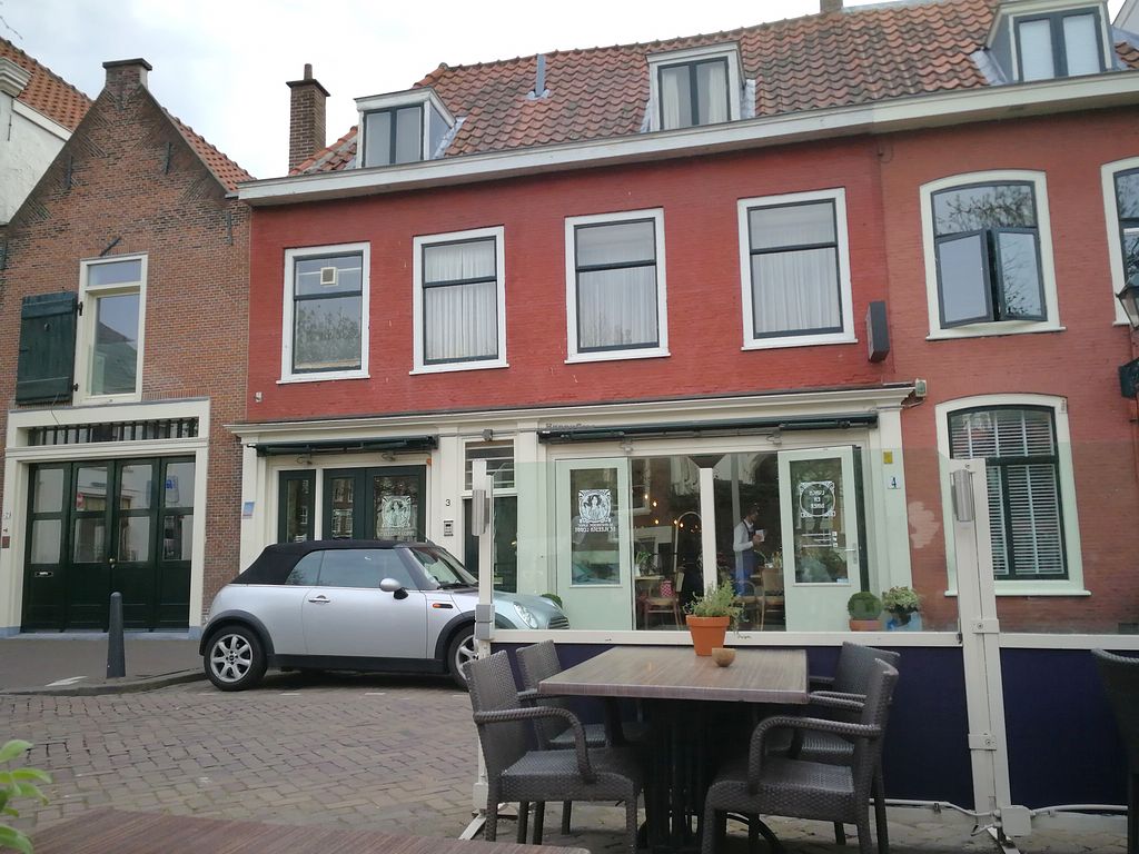 The drinks menu card is very vague so ask what they will charge you, otherwise you will be badly surprised. We did not ask. And beware: it is normal in Dutch restaurant that you get complimentary some bread with butter or a spread, but here they charge you € 6,50 for that (Would you have some bread with your drinks? Yes please…and then, surprise when you get the bill. OK, the price is indicated on the menu, but I overlooked that). Very unpleasant. I hesitate to recommend the place, though it is nicely located, well-furnished and it has a fine terrace along a gracht, i.e., a small canal.