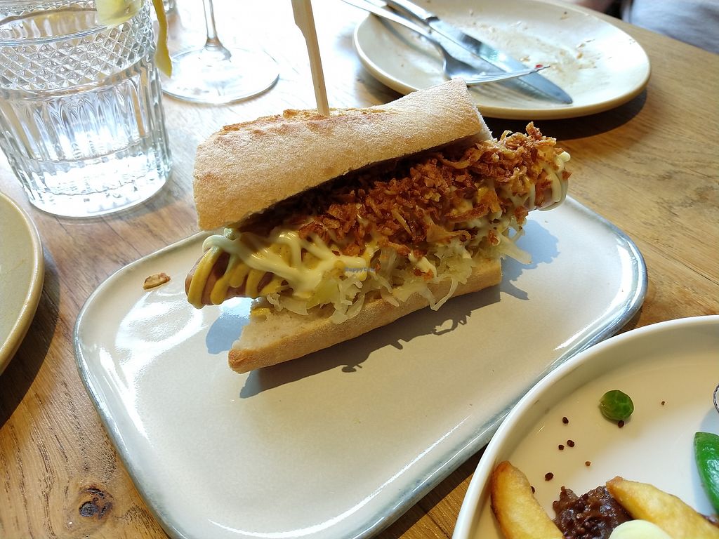 Read moreThe faux meats are made from a plant called lupine, which is grown in the Netherlands (read more about it on their site). As a vegan, I'm in two minds about fake meat, but I have to say that these were the most realistic ones I've ever seen! The flavour is great too (though I can't say it tastes meaty, but it's sure delicious) and the sauces that came with them were great, making two top-notch sandwiches. (Strong onions though, so if you're not fond of onions then ask for them to be left off!) The pie was a Fry's pie, not one of their own, but was still great.