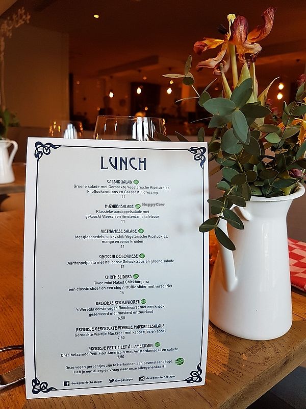 I had lunch at De Vegetarische Slager with two non-vegetarian friends. I had the burger, which was great, and they told me that the "chicken" wrap was also very good.