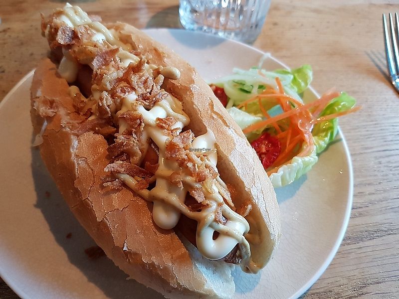 One rainy afternoon, i just came back from the gym and needed something warm and filling to comfort me. The 'broodje bal' that i got, (a sliced meatball in a bun, with some mustard on top) was exactly what I needed. I. Can't tell if it resembles a real 'broodje bal', since I never tasted real meat, but it sure was very tasty! This place is also great when you're shopping in the hague and need a quick bite, and of course to buy faux meat and cheese. They also sell great condiments, such as El Jefe Salsa!