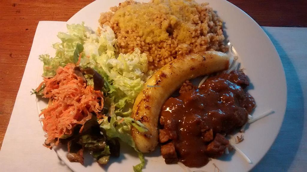 Read moreIt's nicely decorated in a cosy way, with friendly staff and menus available in English too. The vegan items are marked, which is good, though there were only two vegan main dishes and one dessert, so the choice isn't huge. Both vegan dishes were very good, however - especially the "exotic rice meal" which includes a roasted banana, seitan in an incredible peanut sauce, brown rice with a different sauce, and salad. The mexican beans dish was hearty and filling.