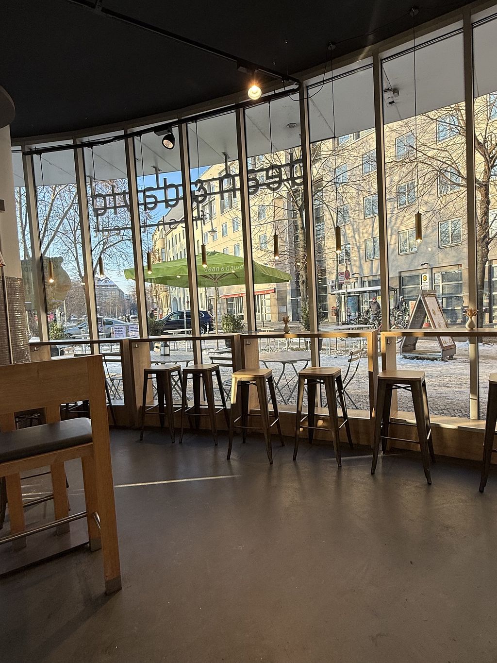 Nice location close to park, stores & tourist sites in 'Mitte' close to major subway/tram/bus station 'Hackescher Markt''. Large outdoor area (50 seats), many inside, too. Bright space. Salads, soups, warm dishes (curries). Talk to staff, they will find vegan solutions. It's more of an urban health environment, not animal rights. Could easily go full vegan.