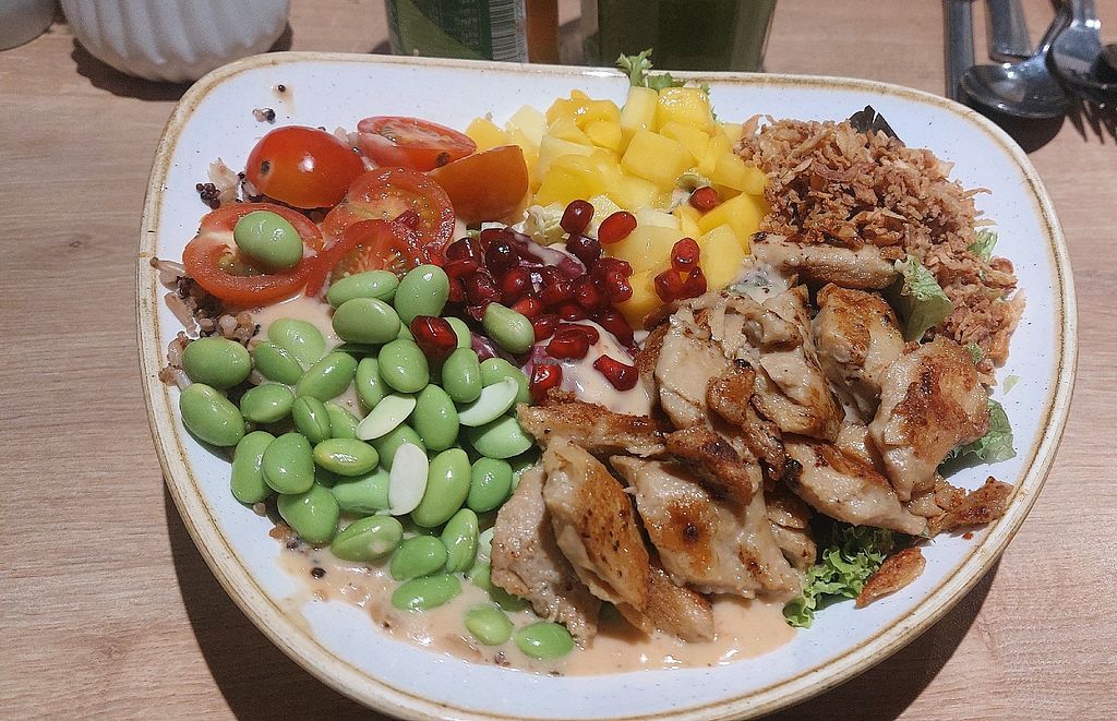 Vegane Bowl mit platet Chicken und Mango 🥗🥭
