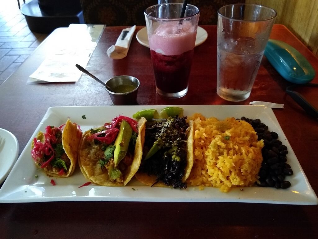 I had the potatoes taquitos ordered vegan. They were terrific. My brother ate a meat dish, he was happy too. Cute intiment environment to go with veggie and non veggie parties!