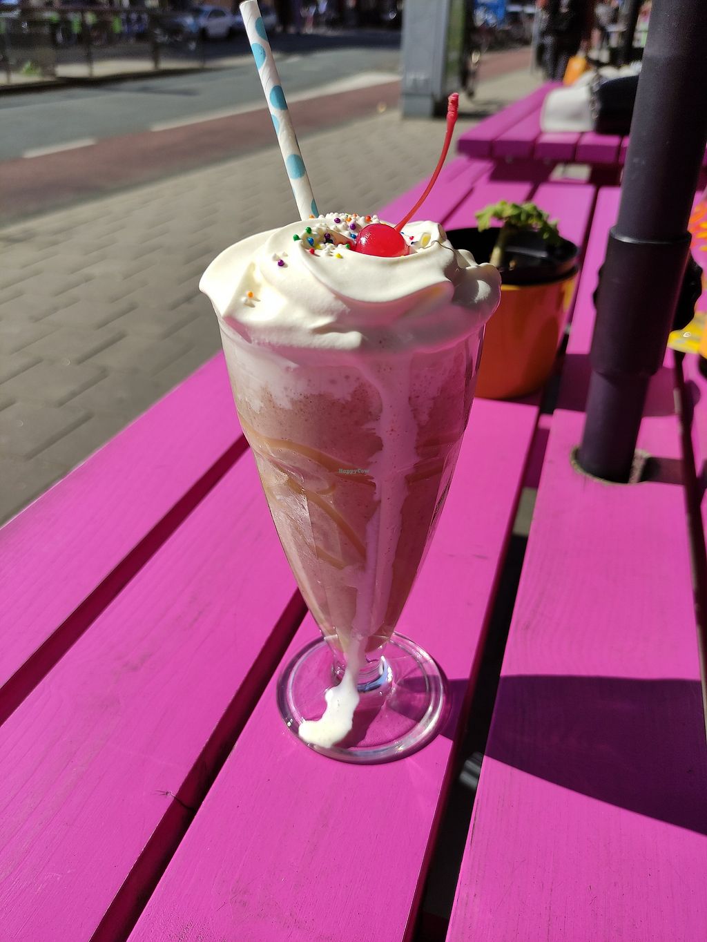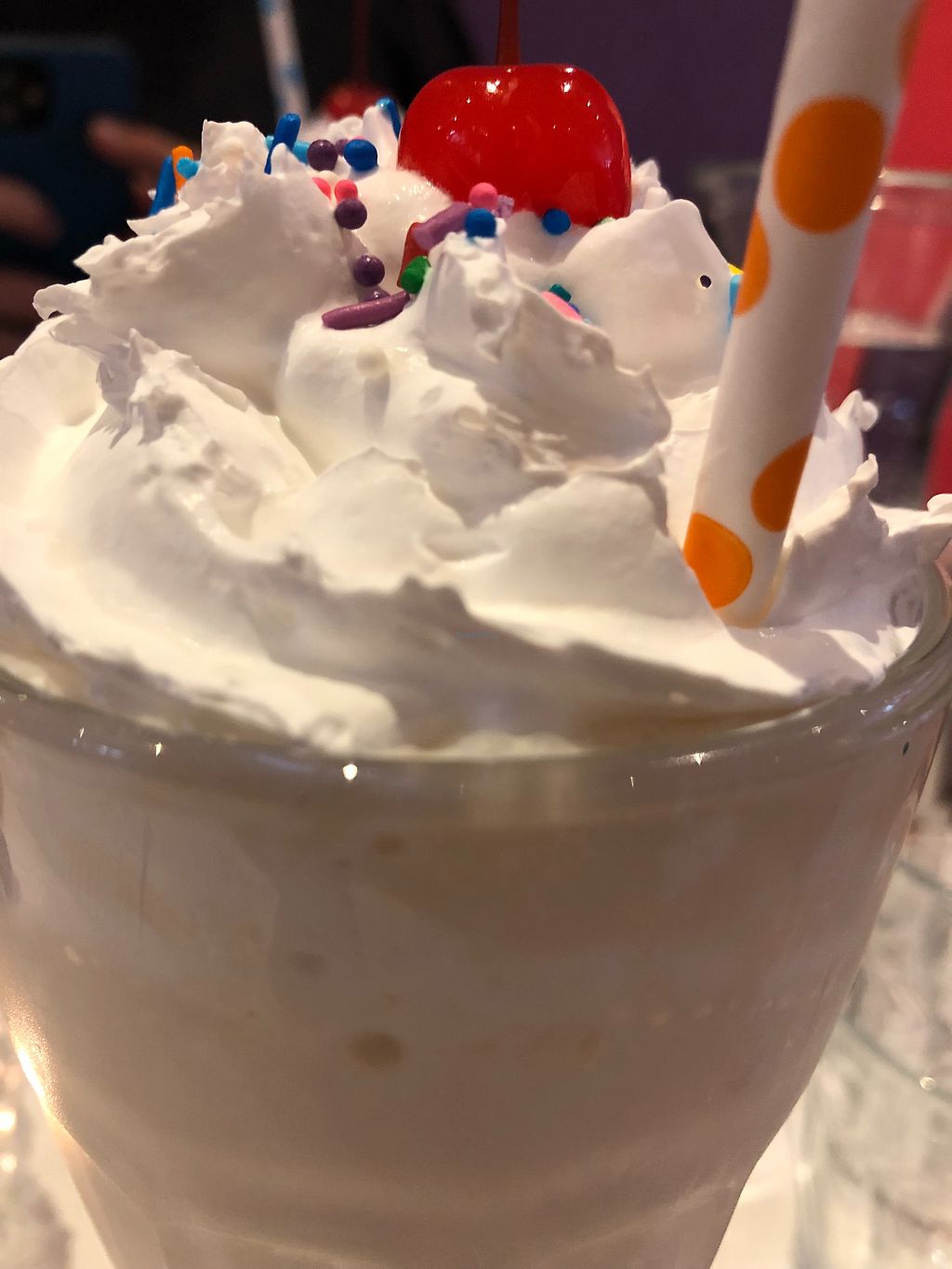Banana milkshake with a cherry and sprinkles on top