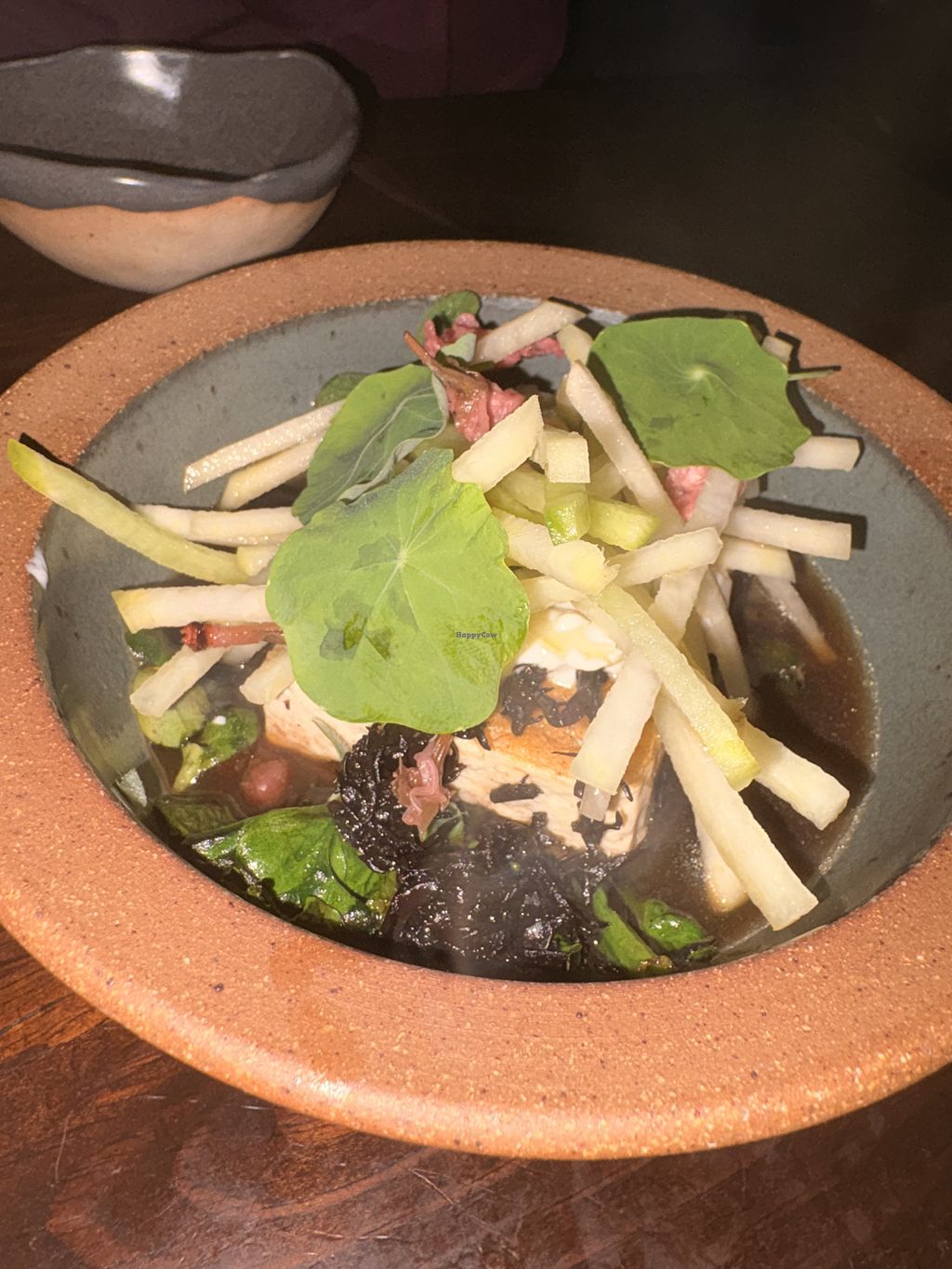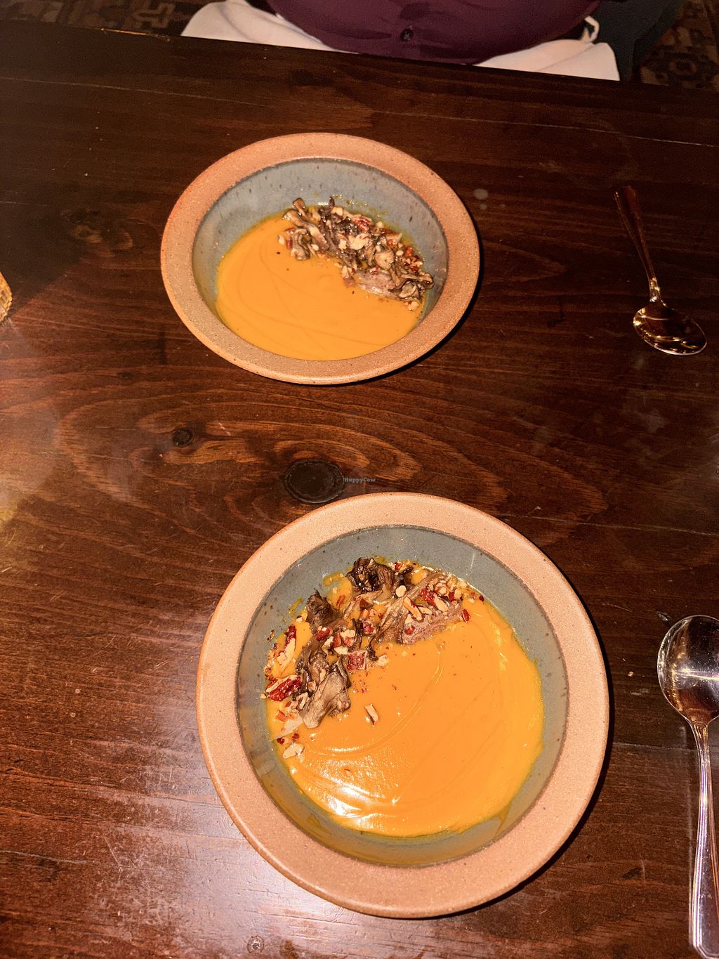 We didn’t even think to come here originally because of the lack of labeling on the menu and we couldn’t tell what was vegan, but we came because there are limited options in the area and were very pleasantly surprised with every dish we tried. The staff were also super knowledgeable and able to explain what was already vegan and what could easily be modified; the vegan dishes are not made with any less effort (as often seems to be the cases at non-vegan restaurants with one tofu entree) and were clearly intricately planned and executed. The squash soup was so good we ordered it twice!