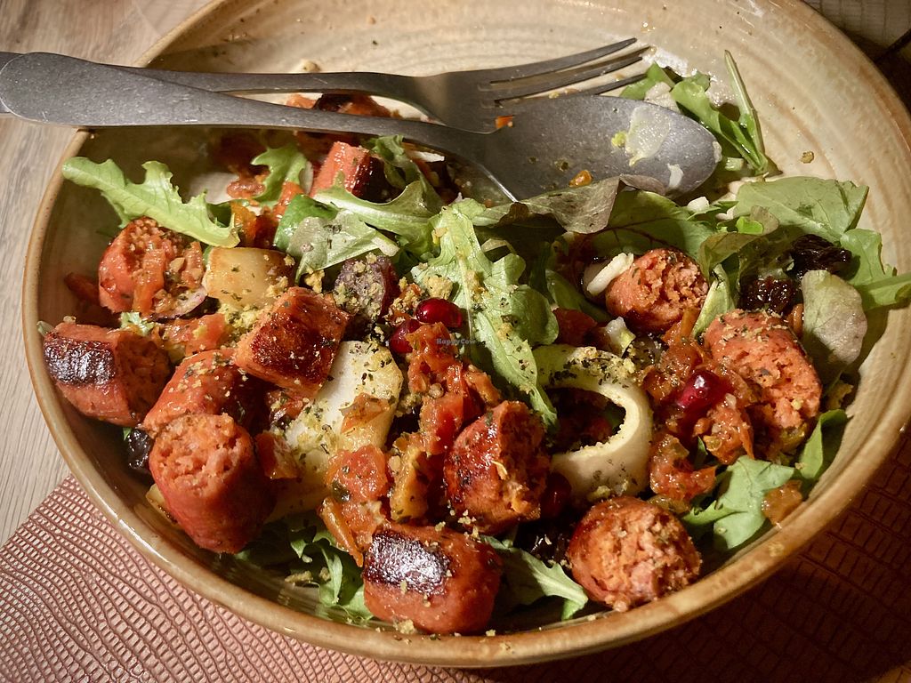 Dit is helaas geen plantaardig restaurant, maar een mooi deel van de kaart kan wel worden aangepast zodat het barbaarse deel uit je maaltijd wordt gehaald. Wij hadden de heerlijke tomatenbruschetta’s, de pasta pesto met boschampignons en de salade met vegan merguez. De kokkin weet wat ze doet.