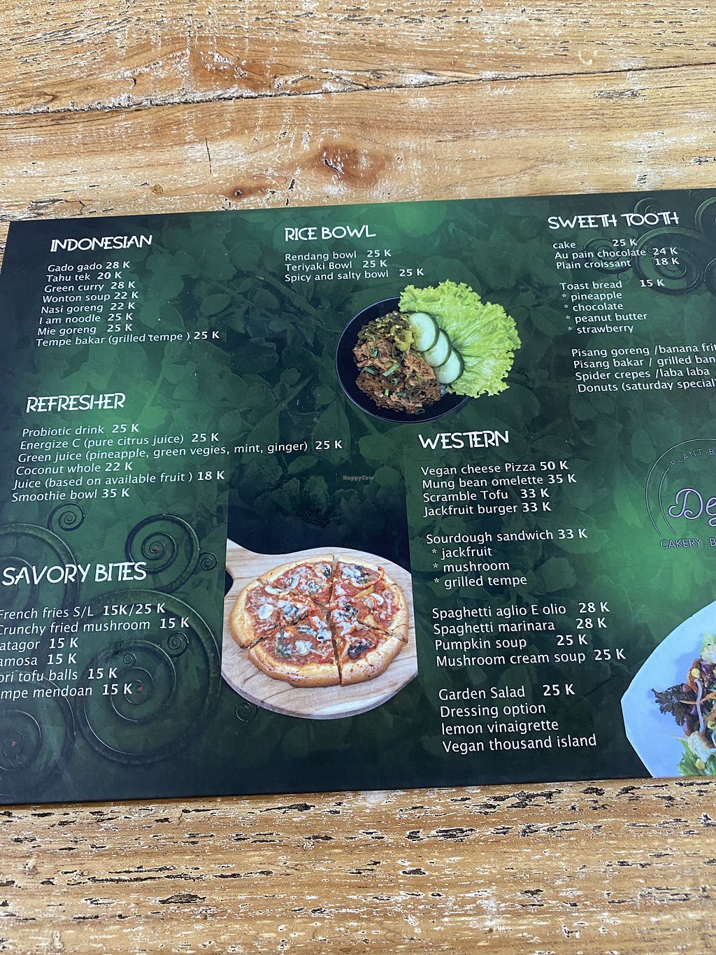 Very good value and fully vegan. There was not much by way of a bakery but the regular menu was good. We paid Rp135 for appetizer, 2mains and two juices.